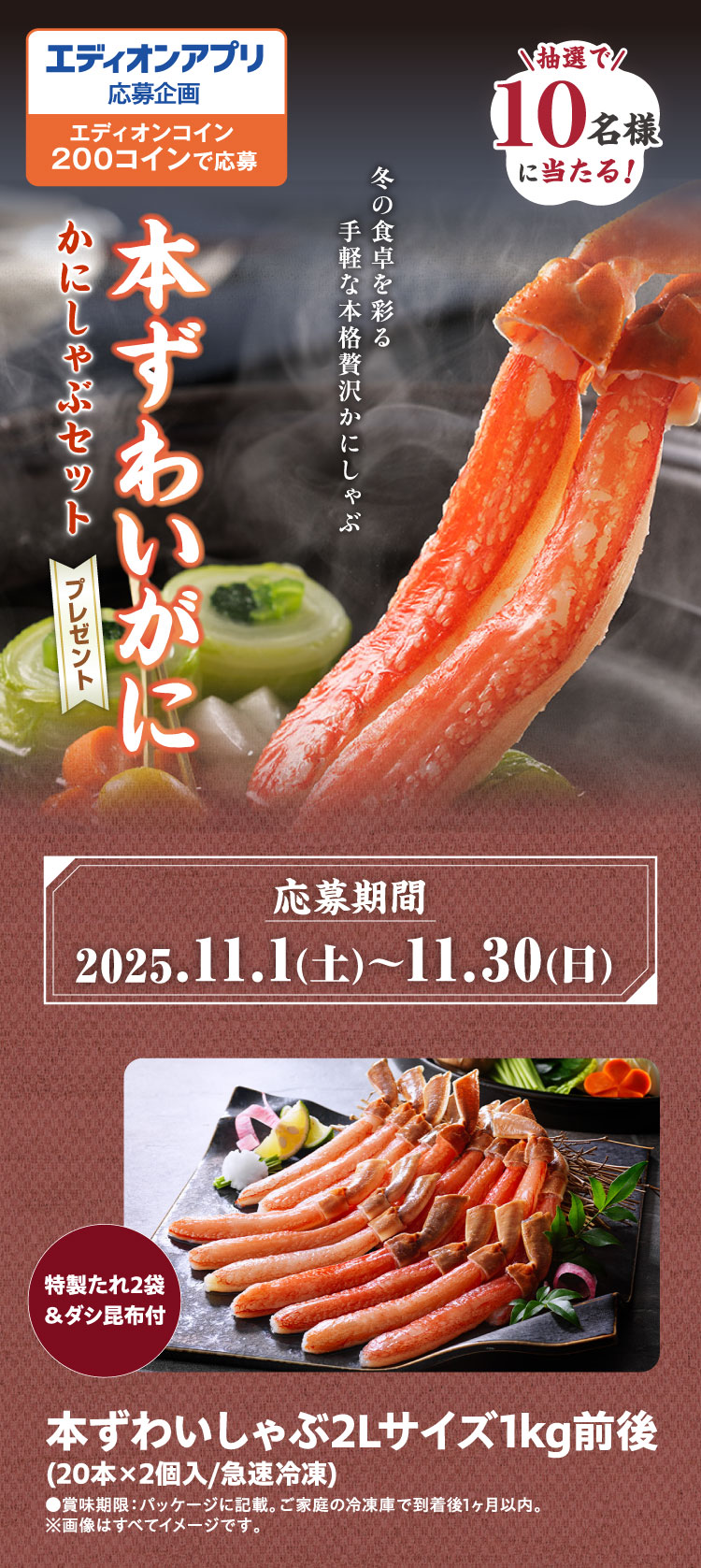 2025年12月下旬(予定)の賞品の発送をもって当選発表と代えさせていただきます。